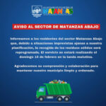 26 febrero, 2026Exhortamos a la población a colaborar no sacando los residuos a las aceras, a fin de contribuir con el orden...