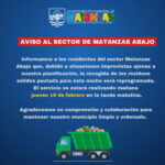 AVISO AL SECTOR MATANZAS ABAJO